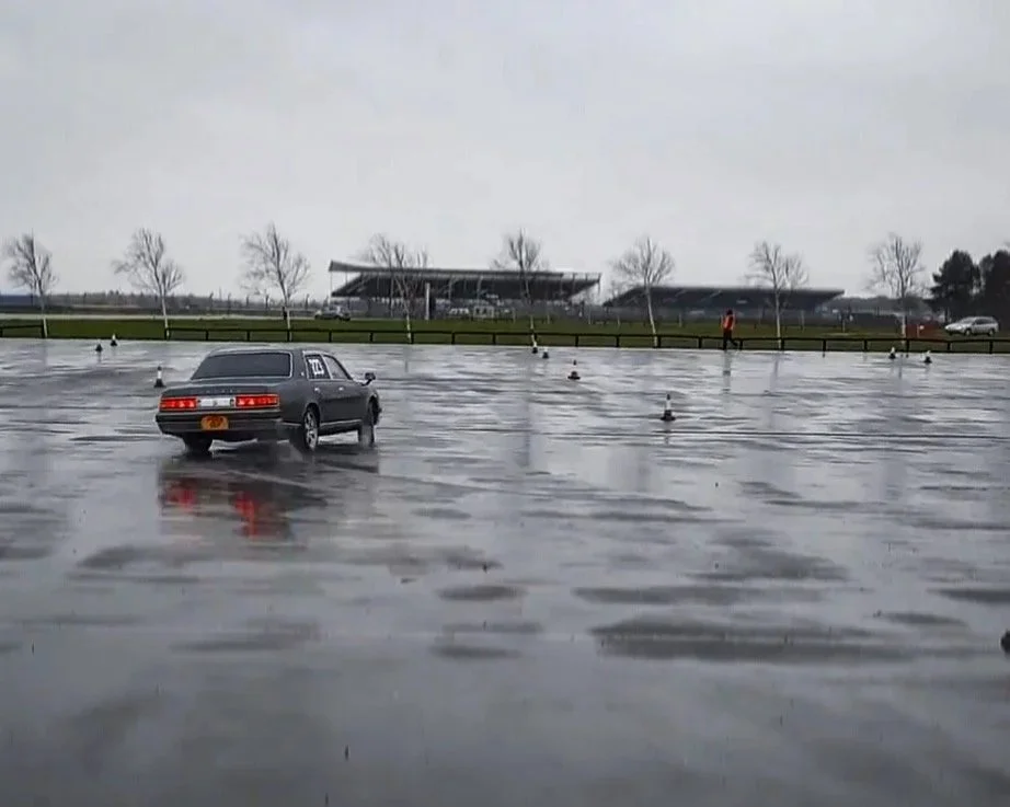 I entered with the Century, which I had outfitted with staggered wide summer rated tyres and a make shift alignment I’d fooled myself into thinking would provide a performance advantage, on arrival the car was stickered up with an entry number before being slung around a selection of beginner friendly autocross-lite type cone challenges. The second pass around these challenges was after some pretty heavy rain which made things interesting.